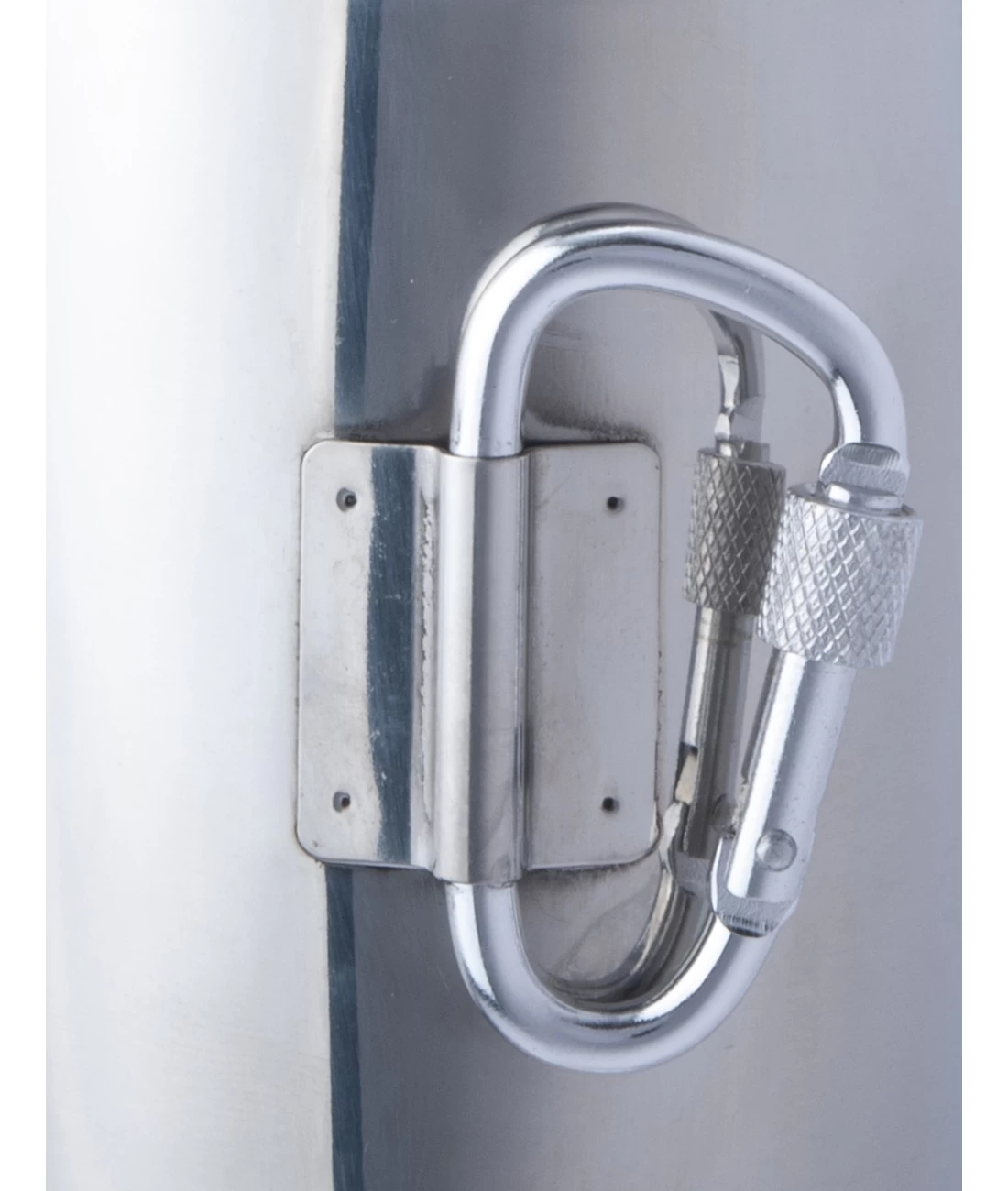 Stabiler, doppelwandiger Thermobecher aus gutem 18/8er Edelstahl. Der Griff ist als Karabiner ausgeführt, der mittels Schraubsicherung nahezu überall sicher angebracht werden kann und auch einklappbar ist. Kleine Trink- oder Isoflaschen passen platzsparend in den Becher. Dieser Becher bietet vielfältige Nutzung und ist darüber hinaus sicher ein Geschenk, das immer ankommt.