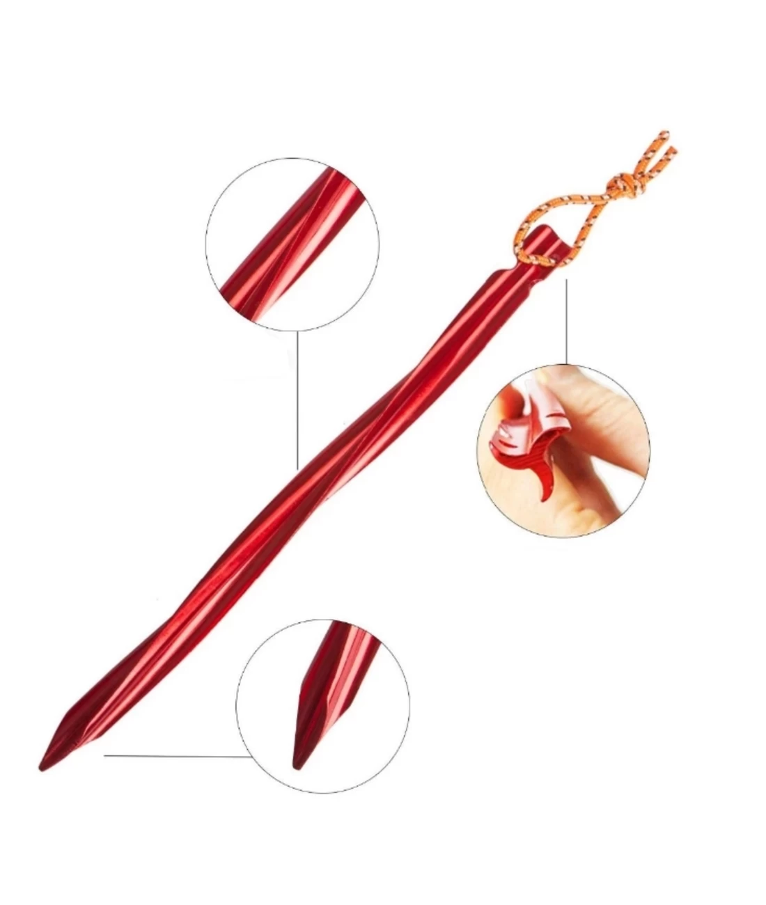 Sehr leichte (18g) und robuste Spiralheringe für weiche und harte Böden. Durch die Spiralform halten diese auch bei Wind und höheren Lasten gut in allen Bodenarten. Ideal für Zelte, Tarps und Vordächer geeignet. In gut sichtbarer Ausführung aus gehärtetem Aluminium und korrosionsbeständig. Y-Form mit reflektierender Schlaufe zum einfachen Herausziehen des Herings.
