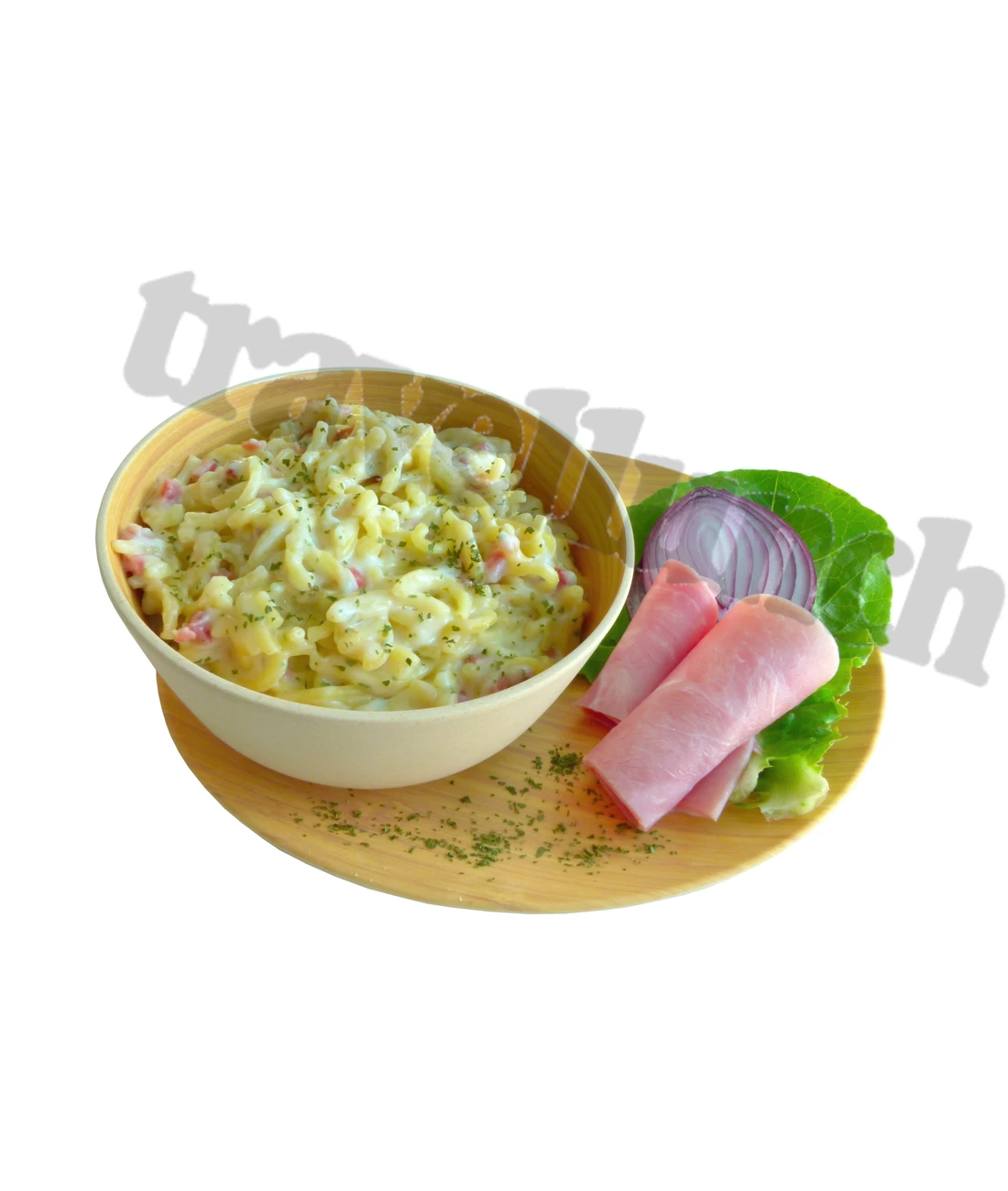 - Zutaten: Nudeln 44% (Hartweizengrieß), Schinken 10% (Schweinefleisch 74%, Salz, Dextrose, Stabilisator E 450, Konservierungsstoff E 250), Vollmilchpulver, modifizierte Stärke, Palmfett, Molkenprotein, Sahnepulver, Maltodextrin, Röstzwiebeln mit Mehl 1,8% (Zwiebeln 76%, Palmfett, Weizenmehl), Salz, Milcheiweiß, Laktose, Hefeextrakt, Zwiebeln, Tomatenpulver, Kräuter, Aromen, Gewürzextrakte