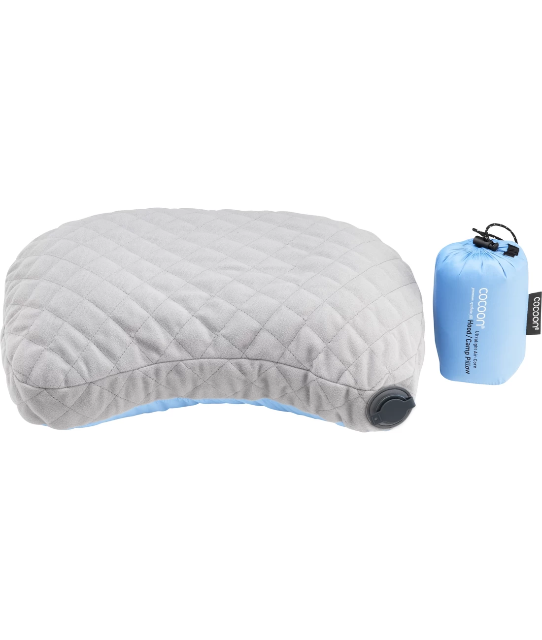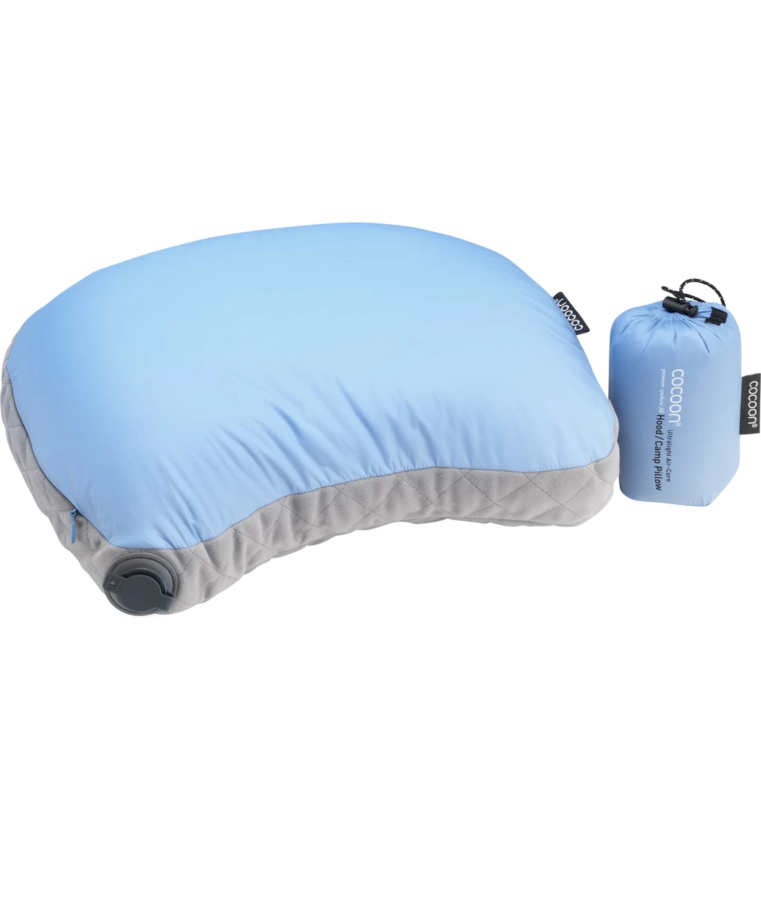 Ultraleichtes, kompakt verpackbares Reisekissen mit aufblasbarem, austauschbarem Luftkern, synthetischer Füllung und einer Hülle aus Mikrofaser und Nylon. Das Air-Core Hood/Camp Pillow ist speziell für den Kopfteil von Schlafsäcken geformt. Auch für die Verwendung in Hängematten ist es bestens geeignet.