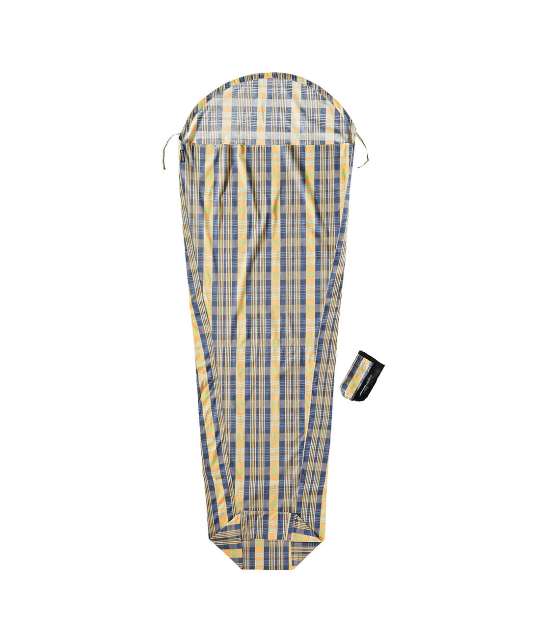 Extrem leichter, mumienförmiger Innenschlafsack zum Schutz des Schlafsackes vor Verschmutzung und zur Erhöhung seiner Wärmeleistung.