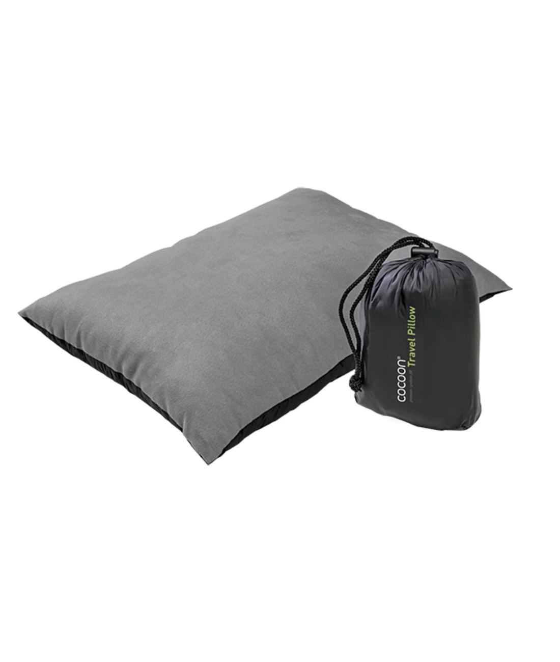 Reisekissen mit hochwertiger synthetischer Füllung und einer Hülle aus weicher Mikrofaser auf der einen und Nylon auf der anderen Seite. Die Unterseite aus glattem, schwarzem Nylon ist schmutzabweisend und unempfindlich. Die Oberseite aus Mikrofaser ist besonders hautfreundlich und angenehm weich. Das Kissen ist ideal für Flugreisen, Zugfahrten, im Zelt oder in der Hütte.