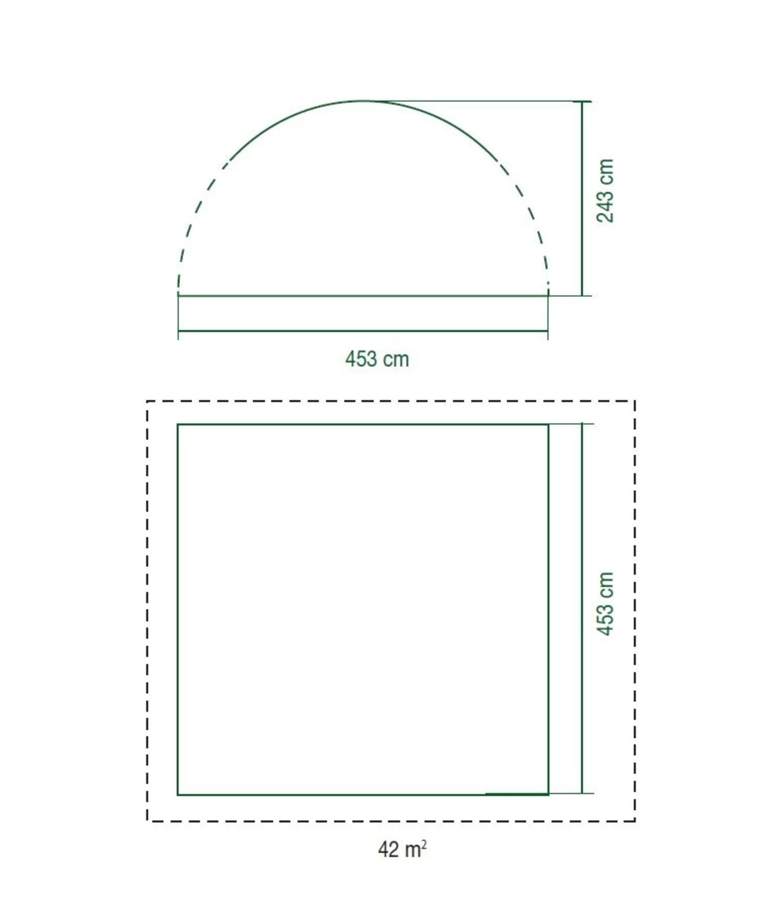 450 x 450 x 243 cm (Außenmaße)