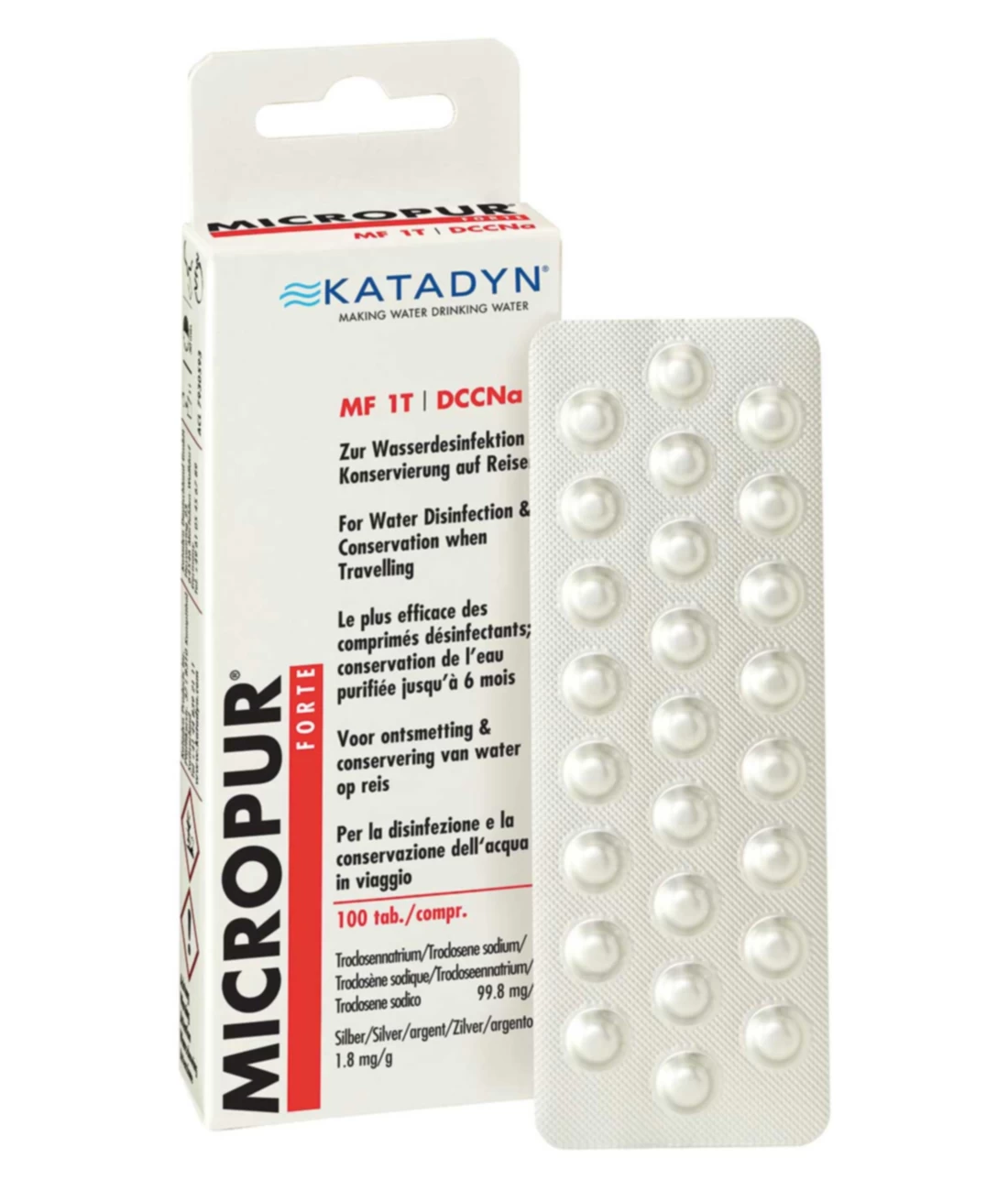 Micropur Forte MF 1T – schnelle und wirkungsvolle Wasserdesinfektion für klares Wasser. Findet in jedem Gepäck Platz. Schützt dank Silberionen bis zu 6 Monate vor Wiederverkeimung. Bei trübem Wasser in Kombination mit einem Filter einsetzen. Anwendung: In Camps, beim Reisen und Wandern.