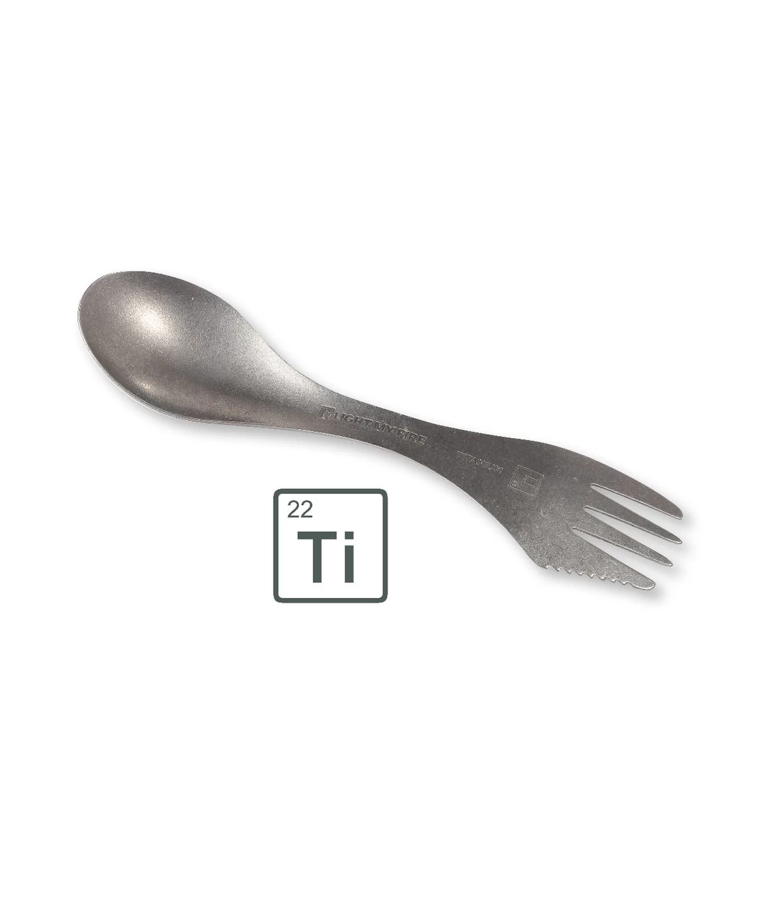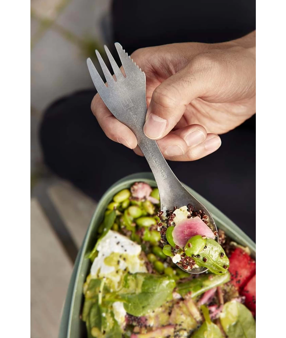 Spork Titanium ist am härtesten im Nehmen von allen Sporks. Dank der extremen Stabilität, Haltbarkeit und Leichtigkeit meistert dieser Göffel mühelos raueste Herausforderungen. Und für diejenigen, die nicht wochenlang Berge besteigen und nicht 1000 Meilen wandern, hat das Spork Titanium noch mehr zu bieten. Es wird niemals brechen, egal wie oft Kinder versehentlich darauf treten, ist korrosionsfrei und nicht magnetisch. Da Titan extrem körperverträglich und die polierte Oberfläche hypoallergen ist, kommt kein metallischer Geschmack auf. Das Light My Fire Titanium Spork ist Ihr perfekter Partner für Rucksacktouren, Reisen und Alltag.