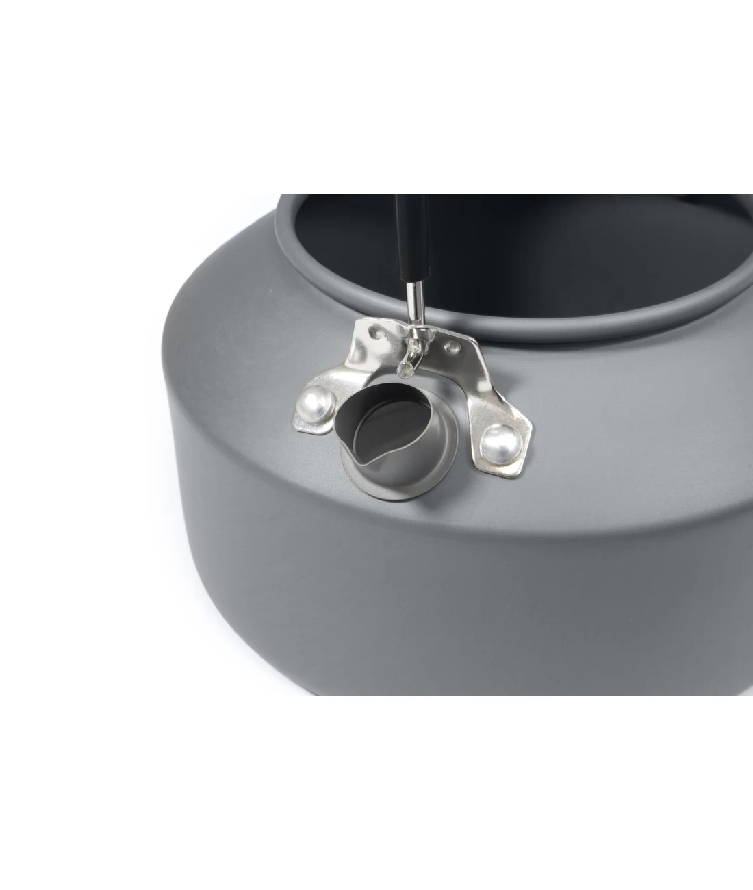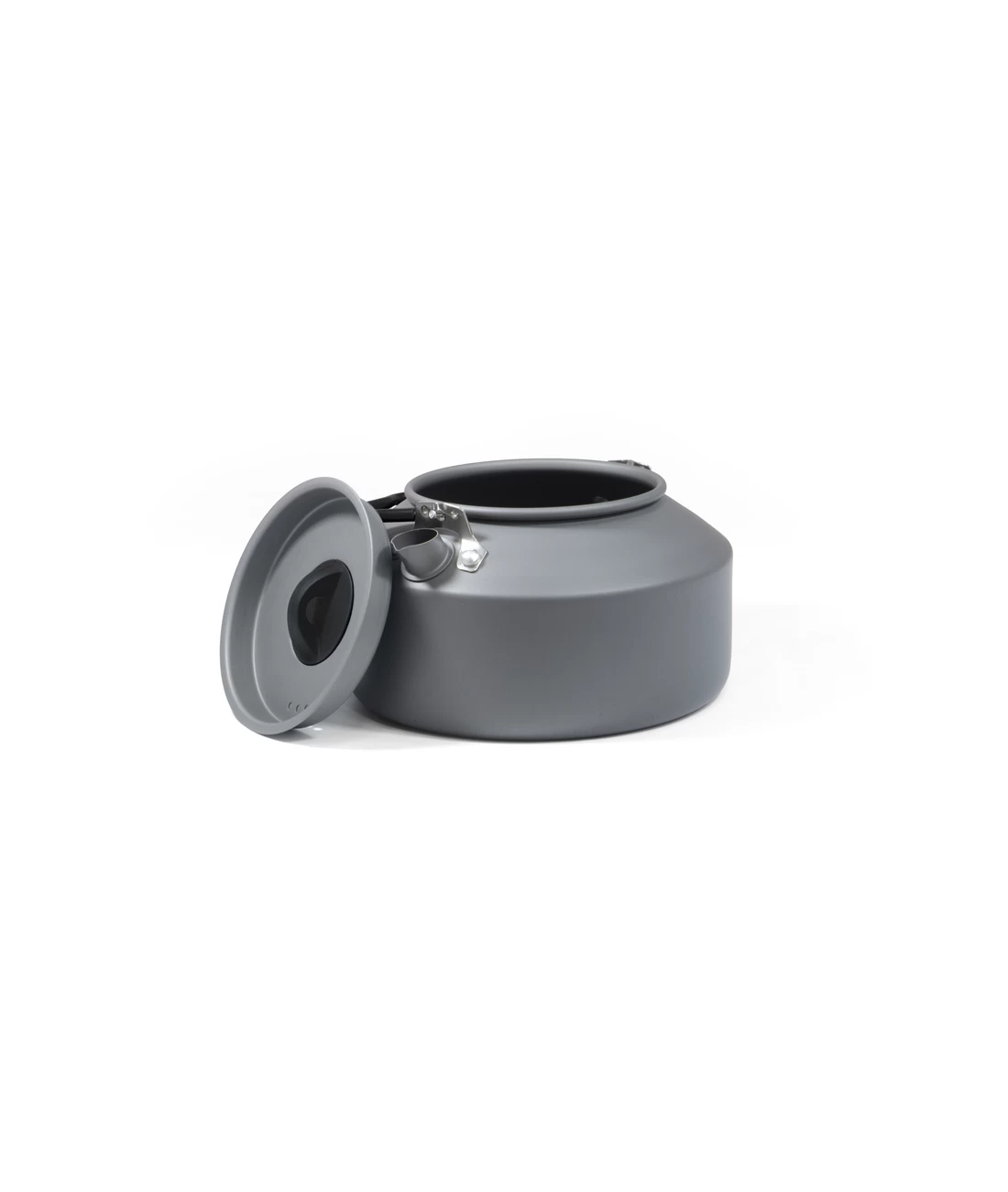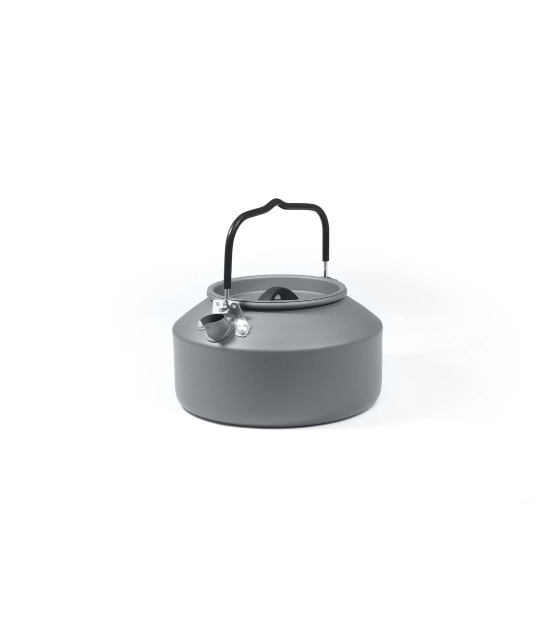 Sehr leichter Wasserkessel mit Deckel aus hartanodisiertem Aluminium. Der stabile und gummierte Klappgriff ermöglicht ein kleines Packmaß. Der Transport erfolgt im praktischen Netzbeutel.