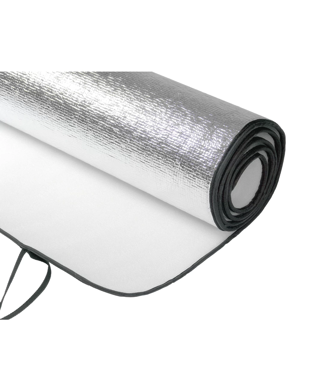 Komfortable, extrem leichte und isolierende Unterlage mit PE-Schaumeinlage, mit beidseitiger Alubeschichtung. Hergestellt aus stabilem Gewebe und ausgestattet mit 2 Gummibändern zum besseren Verpacken. Gut geeignet für kalte und nasse Untergründe, zur Verbesserung der Isolierung bei Luftmatratzen und Isomatten oder als Picknickunterlage.