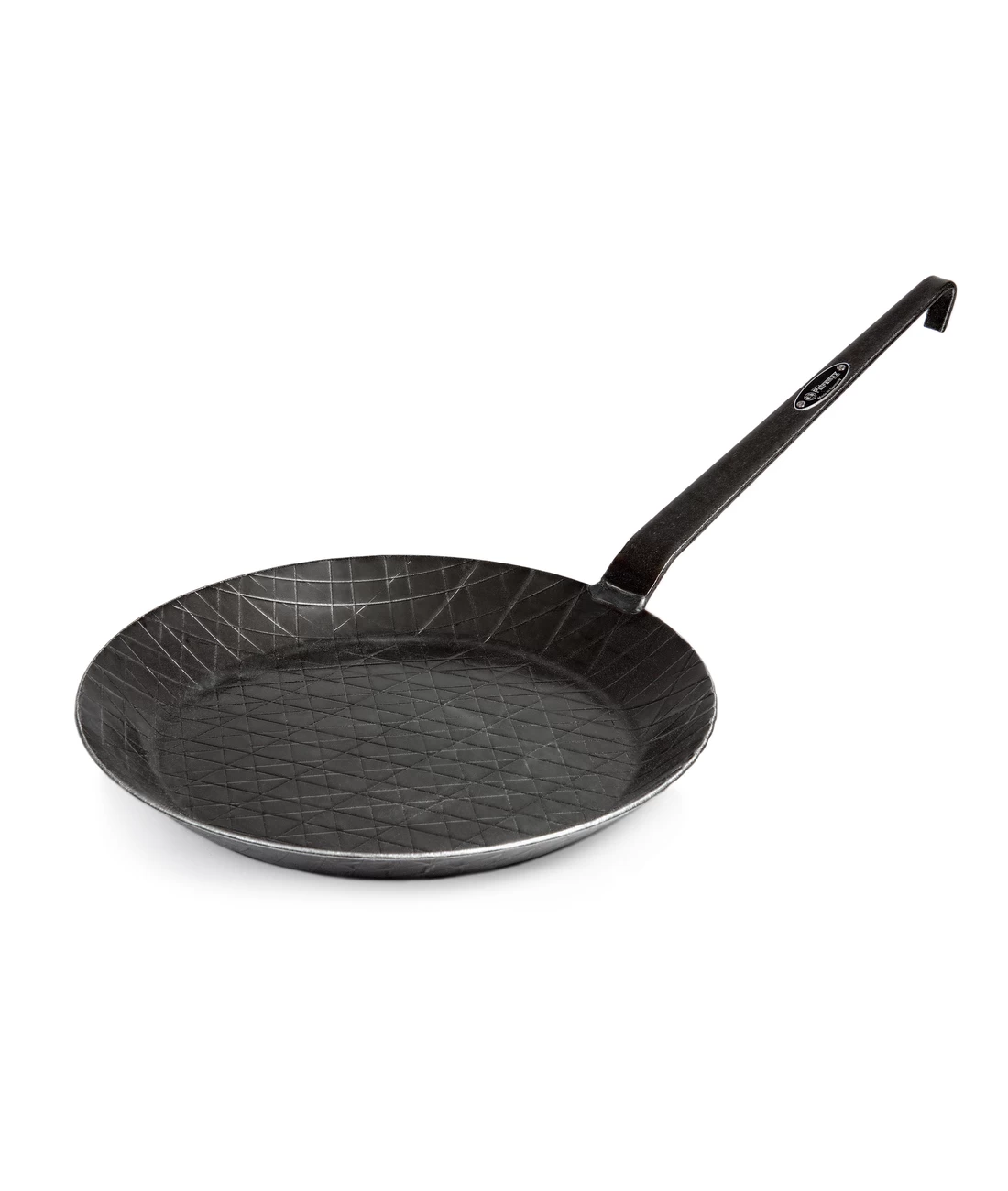 Schwere schmiedeeiserne Pfanne mit exzellenter Wärmeleitfähigkeit. Für das perfekte Pfannengericht unter freiem Himmel oder in der eigenen Küche. Liefert auf allen Herdarten, Kochern und auf offenem Feuer ein geschmacklich einzigartiges Bratergebnis! Bereits mit dem ersten Gebrauch bildet sich durch die spezielle Oberflächenstruktur der Pfanne eine versiegelnde Schutzschicht. Diese Patina entwickelt sich mit jedem Gebrauch weiter und steigert die hervorragende Qualität der robusten Pfanne. So wird diese Pfanne zum unverzichtbaren Begleiter.