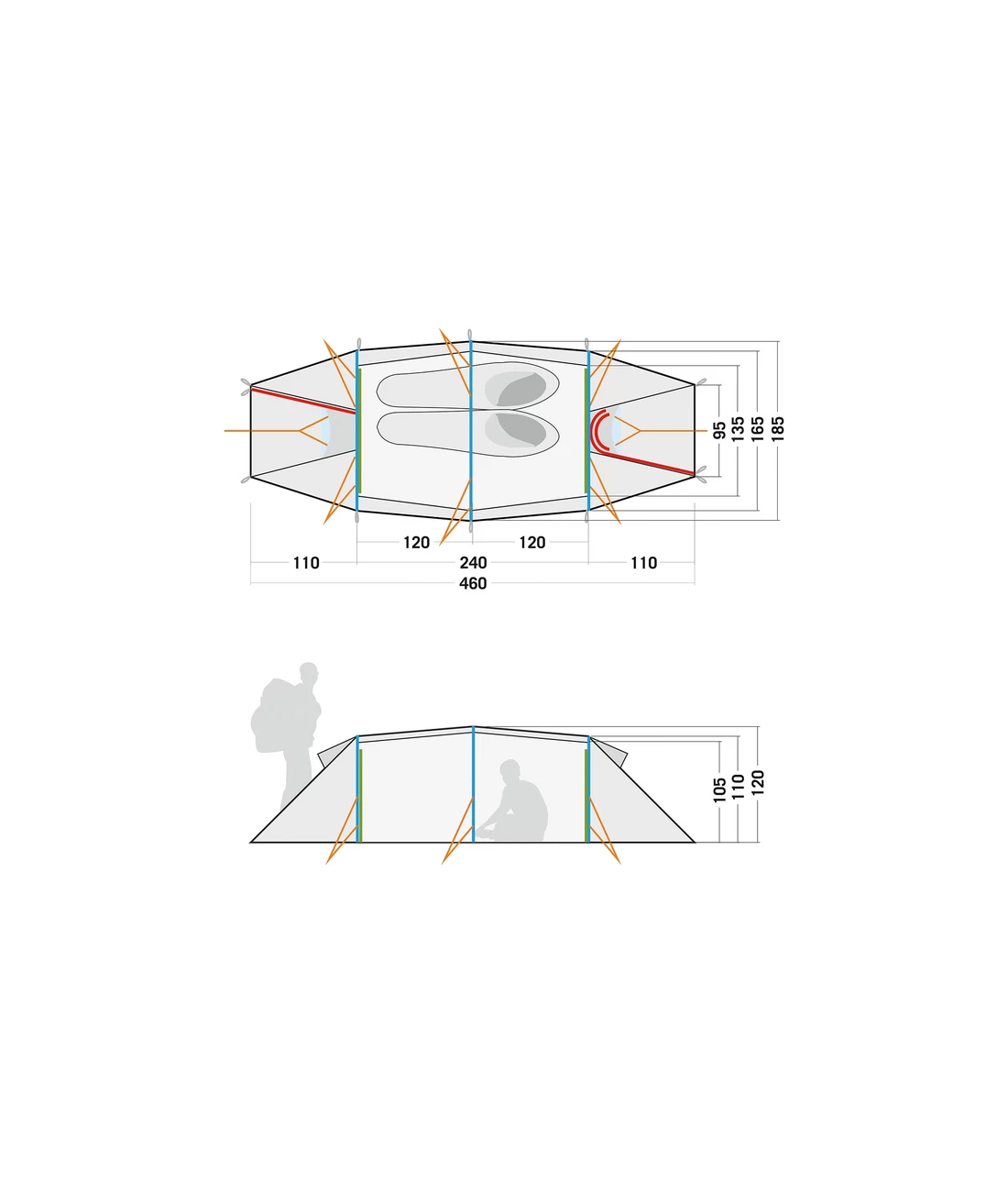 - Zelt und Innenzelt von beiden Seiten betretbar