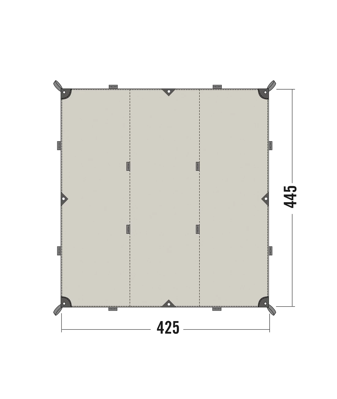 Tarp aus reißfestem Baumwollmischgewebe mit den Maßen 425 x 445 cm. Das große Tarp 1 TC ist ein idealer Schattenspender in heißen Regionen, denn das Material bietet bei starker und langer Sonneneinstrahlung eine bessere UV-Stabilität als Tarps aus Polyestergewebe. Der Baumwollanteil des Gewebes quillt bei Nässe auf und macht das Tarp wasserabweisend. Mit stabilen Ösen an den Ecken und vielen Abspannpunkten kann es unterschiedlich aufgebaut werden.