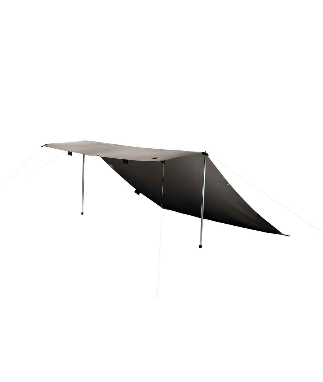 Achtung: Wird das Tarp dauerhaft den Wetterverhältnissen ausgesetzt (UV-Strahlung, Nässe, Wind), kann das die Funktionalität negativ beeinträchtigen.